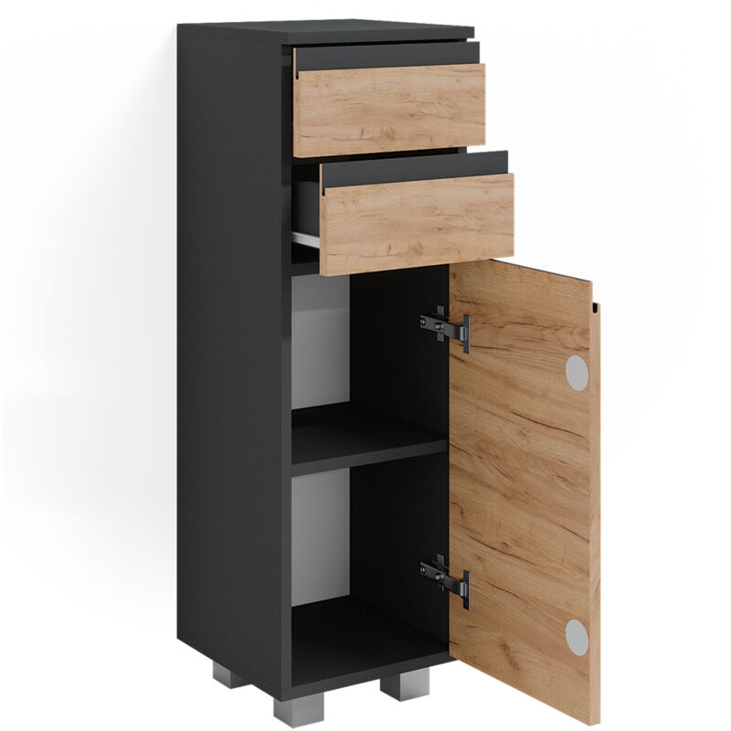 Ensemble meubles bain J-Shape, 3 piu00e8ces, avec armoire de milieu Meuble de salle de bain – J-Shape | Armoire haute Nos combinaisons sont parfaitement adaptées aux différents concepts d'intérieur. Détails techniques : Meuble de salle de bain Couleur : (Corps : Anthracite mat - Avant : Goldkraft)Maße: 30 x 190 x 30 cm (l x H x P) - Poids : 25,6 kg L'armoire haute de salle de bain dispose de deux étagères ouvertes et de deux portes avec façade sans poignée et pieds discrets. Avec l'ensemble d'armoires de salle de bain, vous pouvez ru00e9pondre u00e0 vos besoins d'espace de rangement dans la salle de bain et personnaliser le design. Dimensions Vous pouvez bien sûr choisir votre ensemble de meubles de salle de bain individuellement.Contenu : 1 armoire haute Ce meuble bas de salle de bain est non seulement pratique, mais aussi tru00e8s stylu00e9 gru00e2ce u00e0 son design moderne. Il dispose de deux tiroirs, parfait pour ranger vos produits de beautu00e9... Notre armoire de salle de bain étroite est un bon choix pour tous ceux qui ont peu d'espace mais qui veulent toujours un espace de rangement optimal. Meuble de salle de bain – J-Shape | Armoire haute Dans les étagères ouvertes, vous pouvez placer des décorations et d'autres choses pour un usage quotidien, tandis que les compartiments fermés trouvent leur place dans les objets tels que des serviettes, des sèche-cheveux, etc. Vicco Meuble De Rangement De Salle De Bain Majest, Anthracite Haute Brillance 30 2x96 3cm 93127649 L'organisation dans la salle de bain est absolument sécurisée avec nos meubles de salle de bain. Depuis plus de 15 ans, nous sommes l'un des plus grands détaillants en ligne d'Europe et spécialistes passionnés dans le domaine des meubles et de la décoration intérieure. Dimensions : le meuble à linge a une largeur de 30 cm, une hauteur de 190 cm et une profondeur de 30 cm. Détails : Ils offrent différentes possibilités de rangement et de rangement. Meuble de salle de bain – J-Shape | Armoire haute Moderne et confortable : nos meubles de salle de bain de la série J-Shape. Les meubles que nous développons en Allemagne combinent des exigences élevées en matière de design avec une fabrication rentable et des matériaux de qualité supérieure. Attire tous Le design de qualité supérieure crée une atmosphère chaleureuse dans un concept moderne et met en valeur chaque salle de bain.